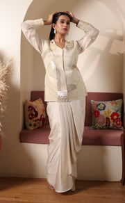 Ivory Aura: Textured Jacket & Pre-Draped Skirt Set